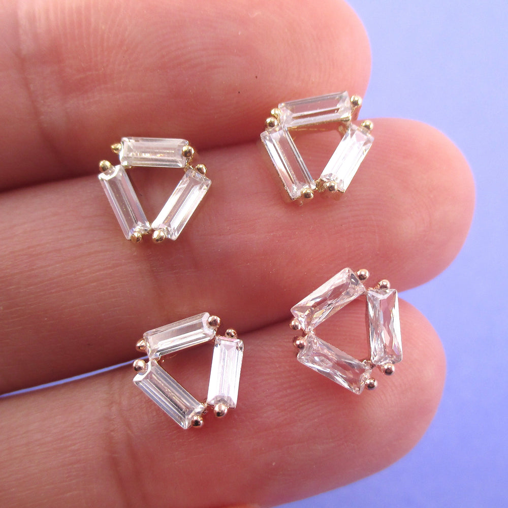 • Abstract Triangular Rhinestone Stud Earrings in Gold or Rose Gold