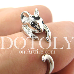 • French Bulldog Puppy Dog Animal Wrap Around Ring in Shiny Silver - Sizes 4 to 9 | DOTOLY