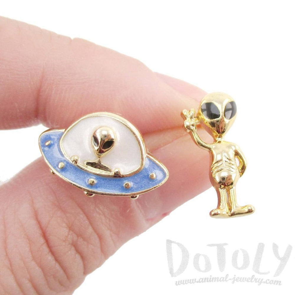 • UFO and Alien Shaped Space Themed Enamel Stud Earrings | DOTOLY | DOTOLY