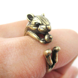 Realistic Hamster Gerbil Guinea Pig Shaped Animal Wrap Around Ring in Brass | US Sizes 4 to 8.5