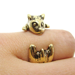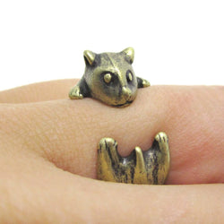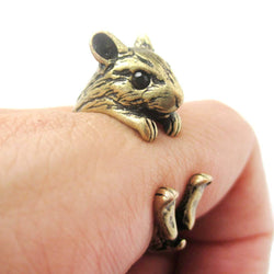 • Realistic Hamster Gerbil With Walnut Animal Wrap Ring in Brass | US Size 6 to 9 | DOTOLY
