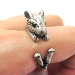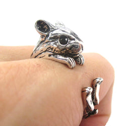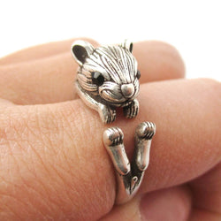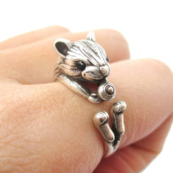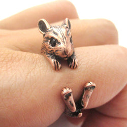 Realistic Hamster Gerbil With Walnut Animal Wrap Ring in Brass | US Size 6 to 9