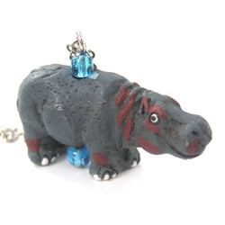 Hippopotamus Hippo Animal Charm Necklace in Silver | Animal Jewelry