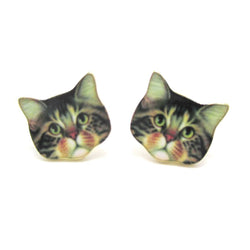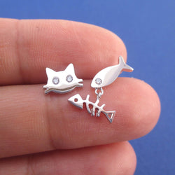 Jumping Kittens Cat Shaped Allergy Free Stud Earrings in Silver
