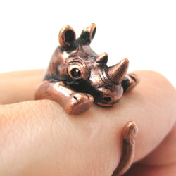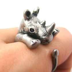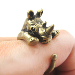• This animal ring is made in the shape of a rhino that wraps itself around your finger in shiny gold! It looks like the rhino is hugging your finger! Our animal wrap rings are very popular and make great gifts!