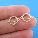 • Gold Round Planet Saturn Outline Shape Rhinestone Stud Earrings in Gold