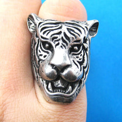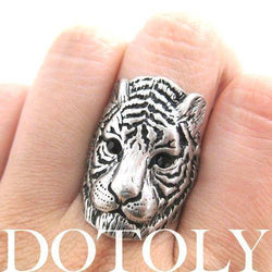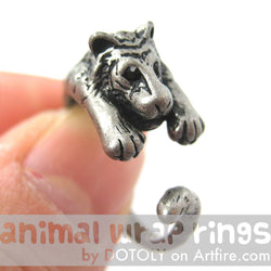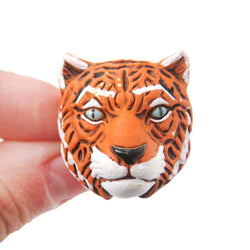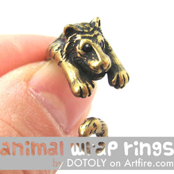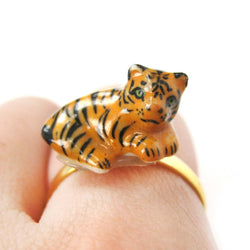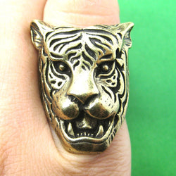 A pair of detailed and realistic tiger shaped animal stud earrings in brass! We also have a matching tiger animal wrap ring and tiger pendant necklace available in our store!