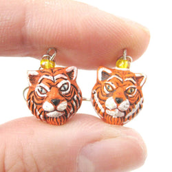 Tiger Realistic Animal Stud Earrings in Brass | Animal Jewelry
