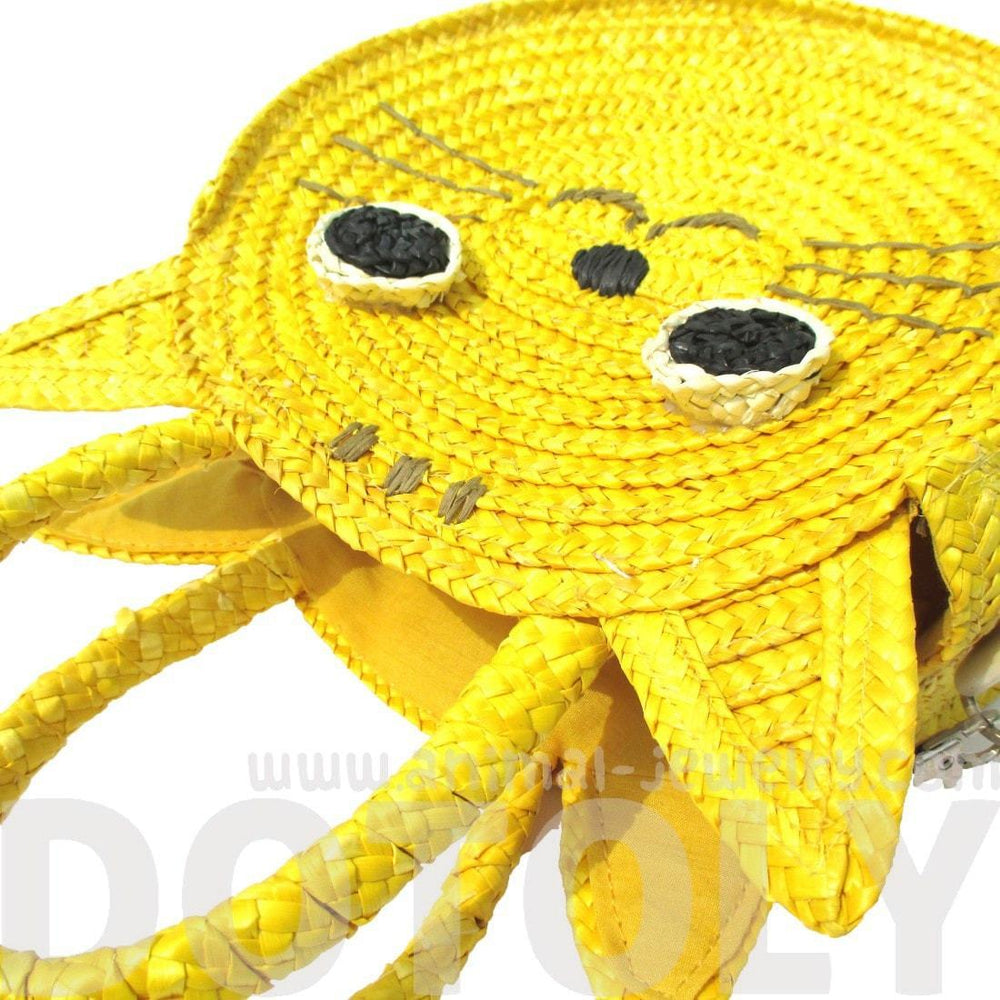 • Kitty Cat Head Face Shaped Straw Woven Cross Body Shoulder Bag for Women in Yellow | DOTOLY
