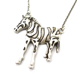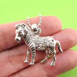 Zebra Horse Pendant Necklace in Silver | Animal Jewelry